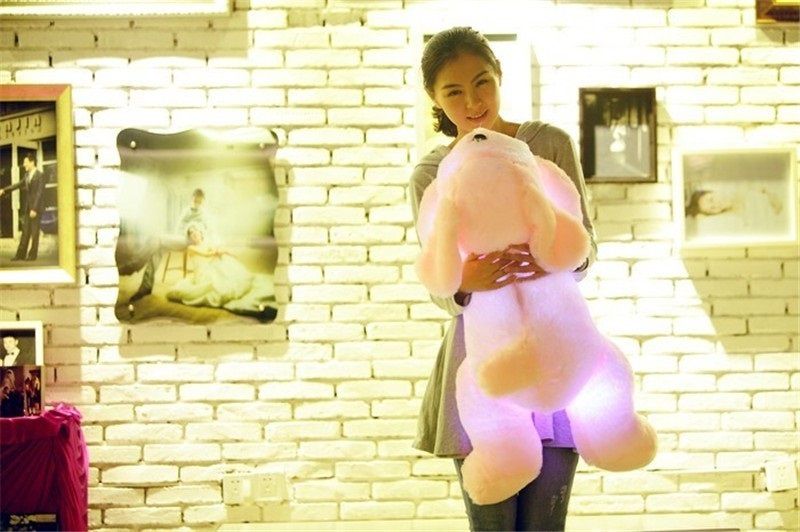 Мягкая, большая чудесная собачка ( 50 см.) подарит вашему ребенку много радости! Нажав на лапку, вы включите подсветку, и ваша собачка засияет. Цвет подсветки можно переключать ( до 8 цветов).