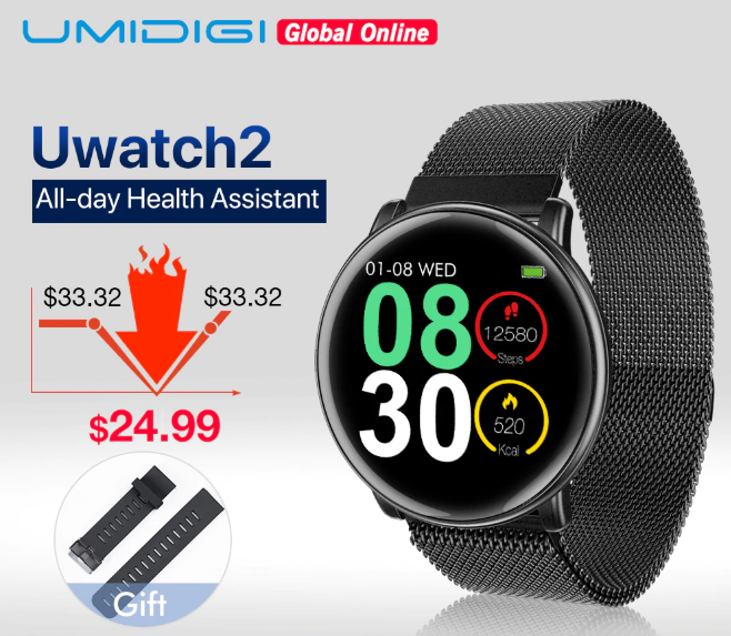 Помимо этого, смарт-часы Umidigi Uwatch 2 получили алюминиевый корпус, соответствующий степени защиты IP67, чип Nordic nRF52832, беспроводной модуль Bluetooth 4.2 для синхронизации со смартфоном, датчик ЧСС с круглосуточным контролем, функцию мониторинга сна, шагомер, семь спортивных режимов, а предустановленные приложения позволят контролировать физические нагрузки владельца.